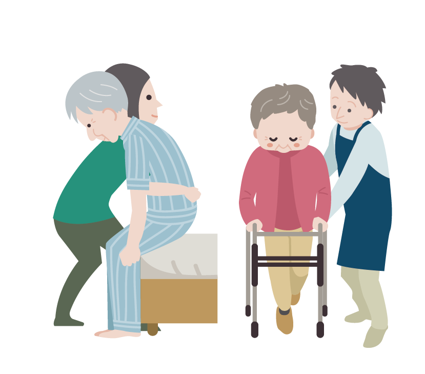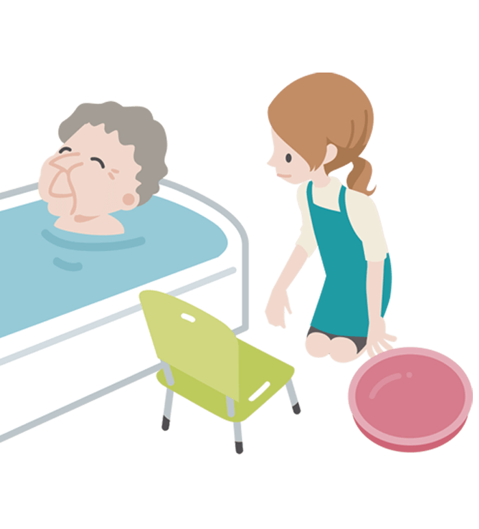 体の清拭、洗髪入浴介助、食事や排せつなどの介助・指導